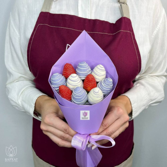 Клубничный букет в сиреневой упаковке