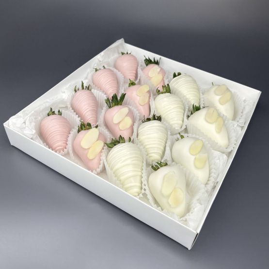 Мы собираем клубничные букеты по весу, а не по штукам. Количество, форма и размер ягод могут отличаться — ведь каждая ягода уникальна.