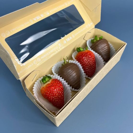 Мы собираем клубничные букеты по весу, а не по штукам. Количество, форма и размер ягод могут отличаться — ведь каждая ягода уникальна.