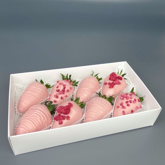 Мы собираем клубничные букеты по весу, а не по штукам. Количество, форма и размер ягод могут отличаться — ведь каждая ягода уникальна.