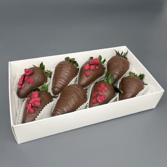 Мы собираем клубничные букеты по весу, а не по штукам. Количество, форма и размер ягод могут отличаться — ведь каждая ягода уникальна.