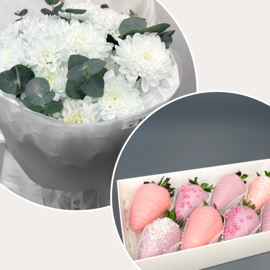 Мы собираем клубничные букеты по весу, а не по штукам. Количество, форма и размер ягод могут отличаться — ведь каждая ягода уникальна.