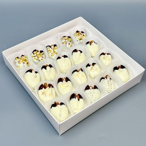 Мы собираем клубничные букеты по весу, а не по штукам. Количество, форма и размер ягод могут отличаться — ведь каждая ягода уникальна.