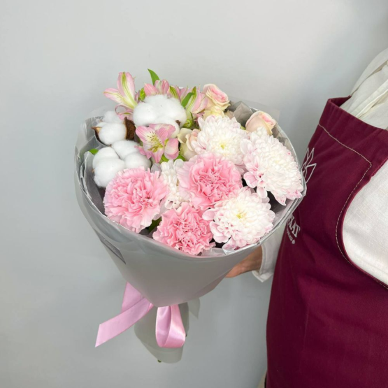 Мы стараемся собрать букет максимально похожим на фото. Возможны небольшие отличия в оттенках.