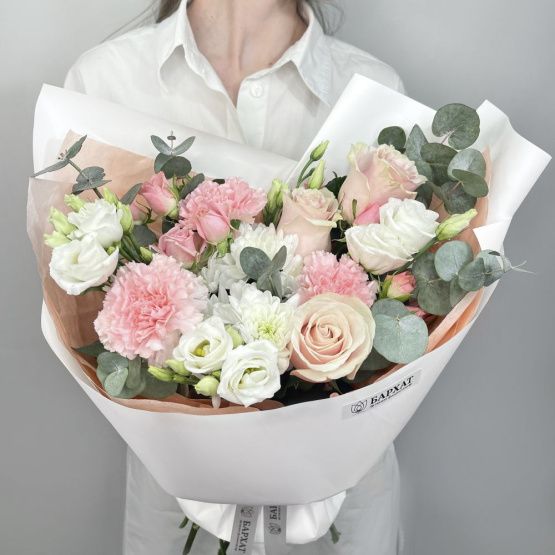 Мы стараемся собрать букет максимально похожим на фото. Возможны небольшие отличия в оттенках.