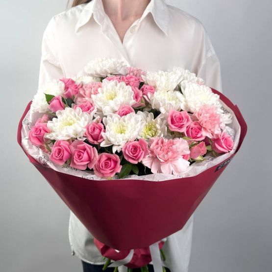 Сорт и оттенок могут незначительно отличаться — если нужных цветов не будет, флорист подберет подходящую замену.