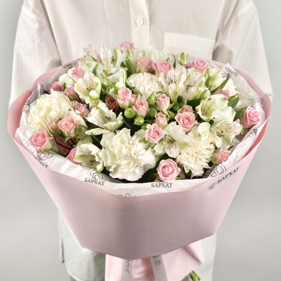 Мы стараемся собрать букет максимально похожим на фото. Возможны небольшие отличия в оттенках.