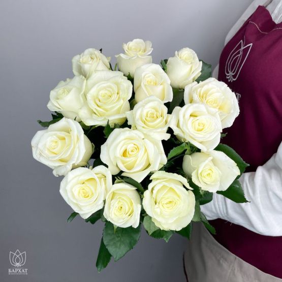 Букет из 15 белых роз под ленту